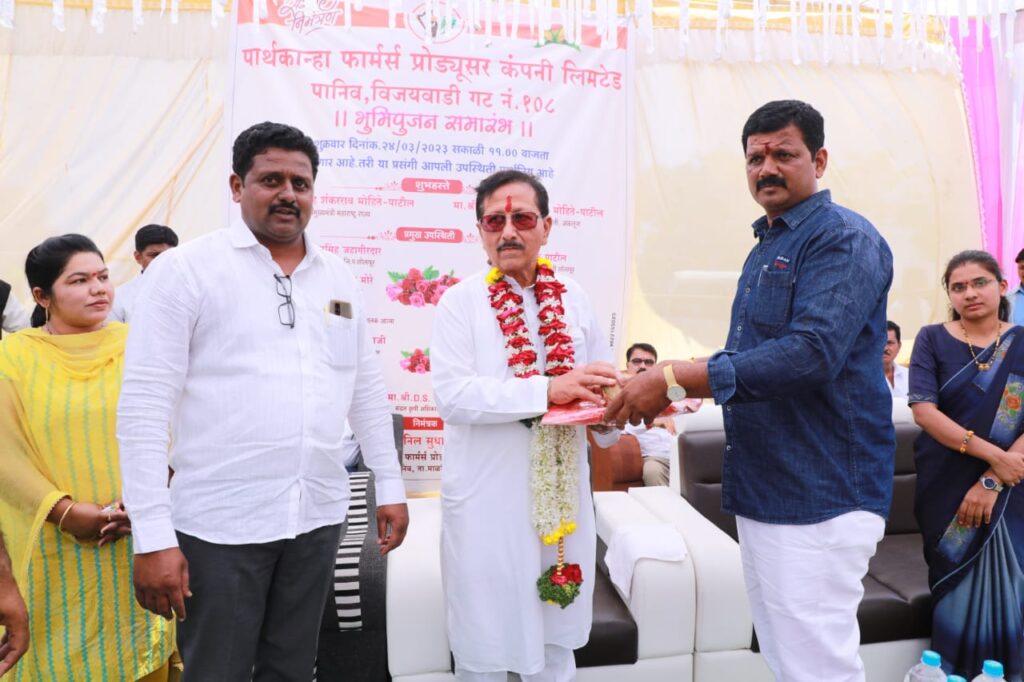 ते विजयवाडी ता माळशिरस येथील पार्थ कान्हा फार्मर्स प्रोड्युसर कंपनीचा भूमीपूजन समारंभ समारंभ प्रसंगी बोलत होते भूमिपूजन समारंभ माजी उपमुख्यमंत्री विजयसिंह मोहिते पाटील यांच्या हस्ते शुक्रवार दि 24 मार्च रोजी संपन्न झाला यावेळी अकलूज कृषी उत्पन्न बाजार समितीचे अध्यक्ष मदनसिंह मोहिते पाटील, युवा उद्योजक सुजयसिंह माने पाटील, संग्रामसिंह जहागीरदार, के के पाटील, शरद मोरे,अजिंक्य माने पाटील ,,दीपक खराडे,,कृषी अधिकारी पूनम चव्हाण, डी एस गायकवाड, उद्योजक निवृत्ती गोदाजी,कुलदीप ढेकळे, काजल जाधव,व बी डी देशमुख,आदी मान्यवर उपस्थित होते.
