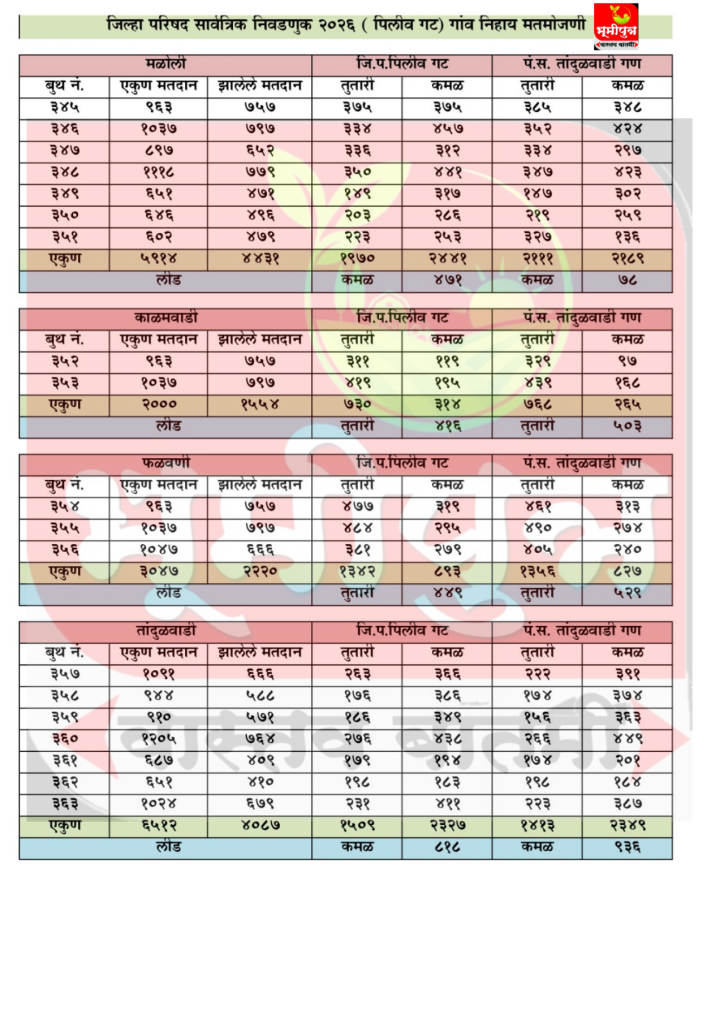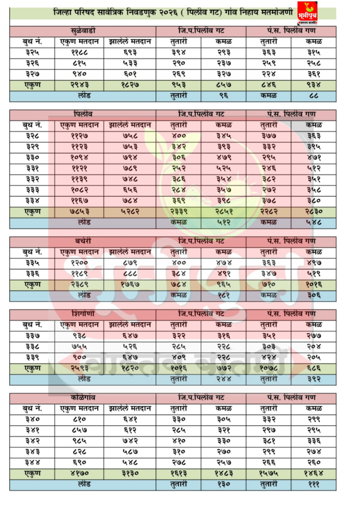 पिलीव जिल्हा परिषद गट व गणातील उमेदवारांना गावनिहाय मिळालेली मते